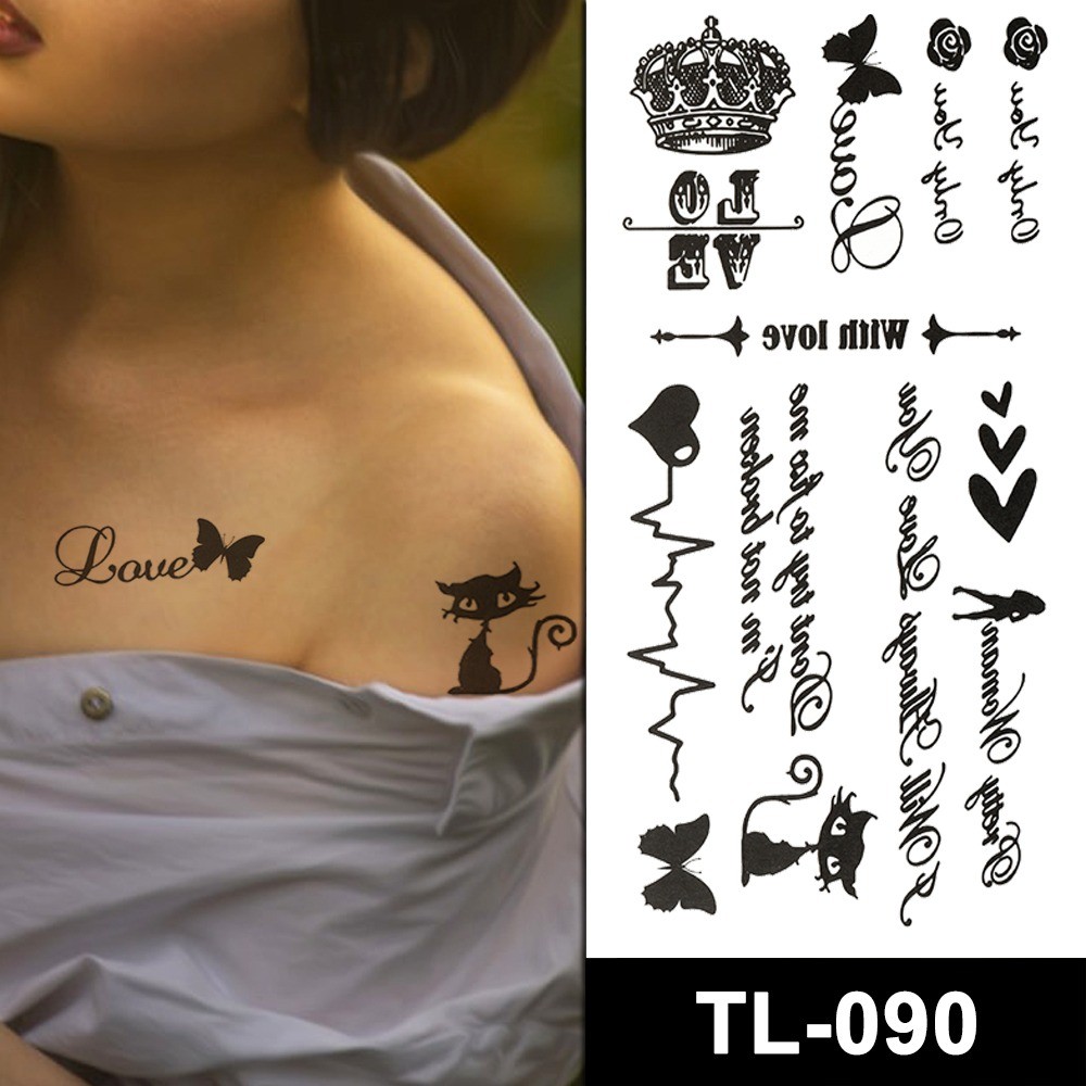 Dočasné tetování, které propojuje něhu, styl a lehký flirt. Love Notes je sada symbolů – nápisy, srdce, korunky, motýli i roztomilá kočka – ideální pro ty, kdo chtějí vyjádřit emoce beze slov. Jemné, ženské, ale s charakterem.